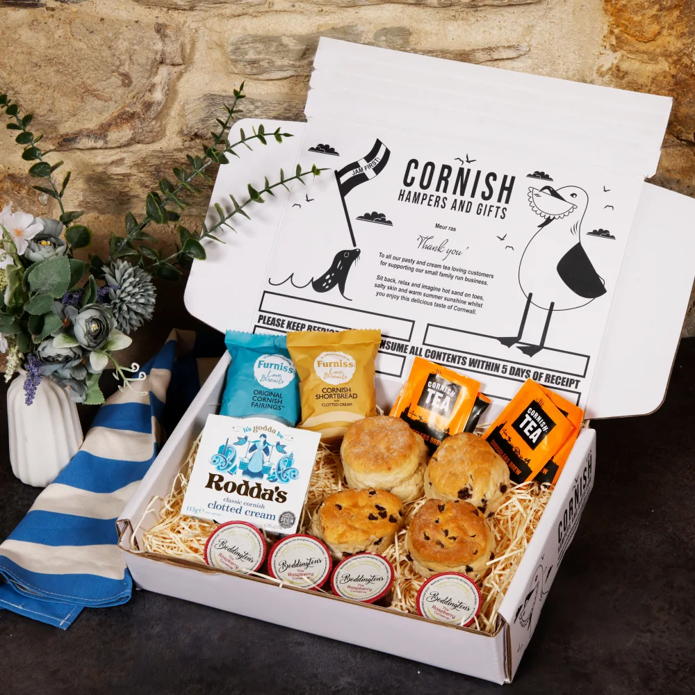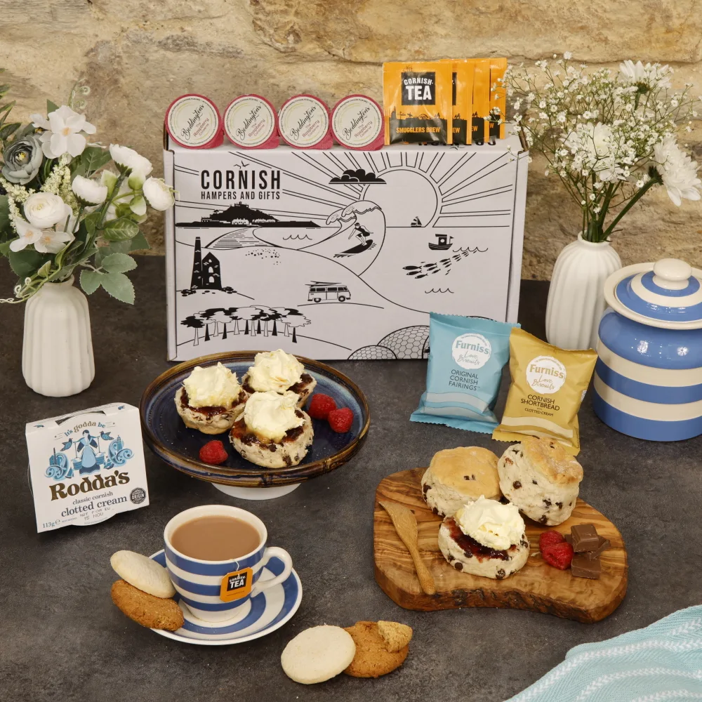 Experience the essence of Cornwall with our Cream Tea Hampers, available for delivery throughout the UK. We meticulously curate our hampers with premium products sourced directly from Cornwall, guaranteeing exceptional quality and authenticity. Ideal for any occasion, our Cornish cream tea hampers offer a delightful treat at any time.
