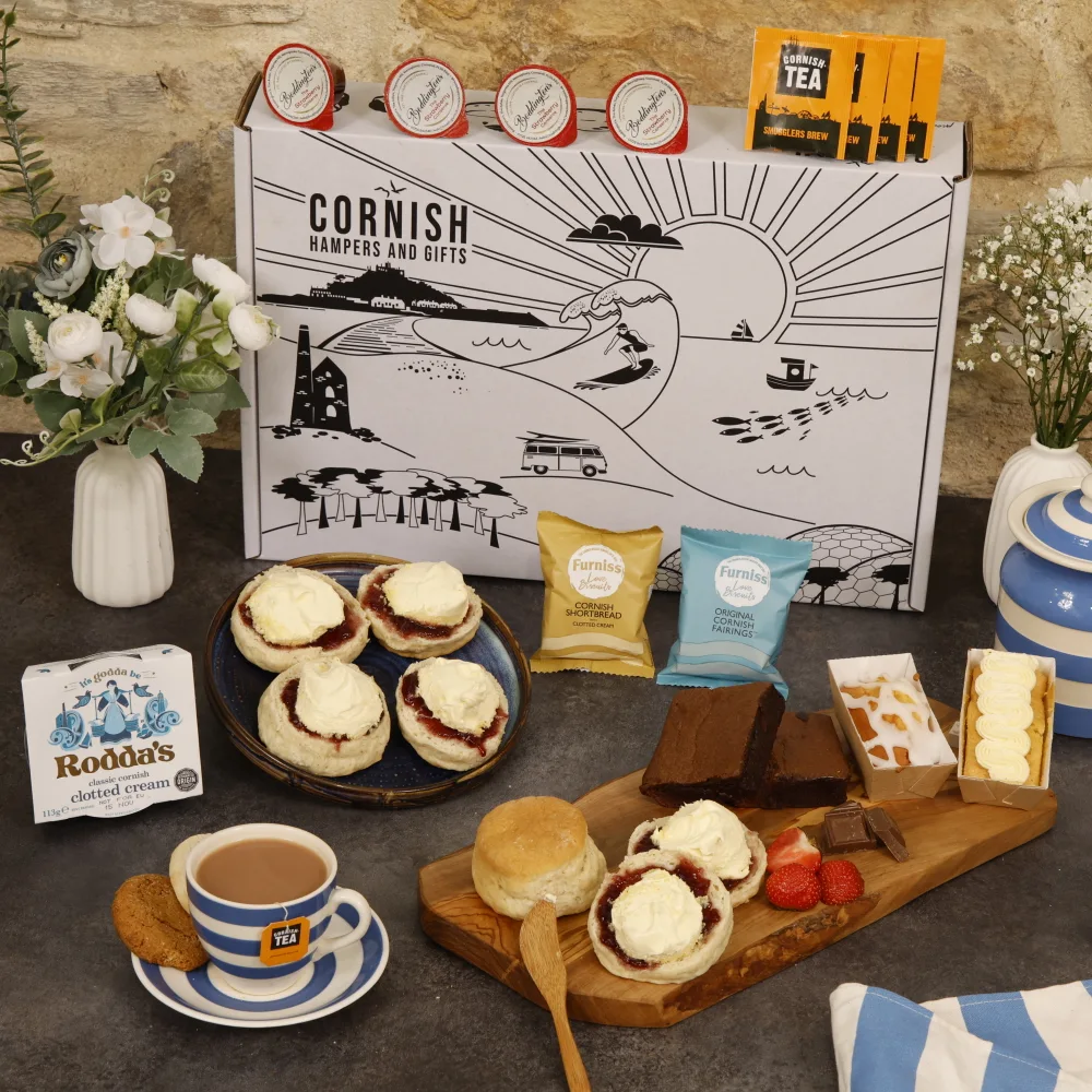 Experience the essence of Cornwall with our Cream Tea Hampers, available for delivery throughout the UK. We meticulously curate our hampers with premium products sourced directly from Cornwall, guaranteeing exceptional quality and authenticity. Ideal for any occasion, our Cornish cream tea hampers offer a delightful treat at any time.